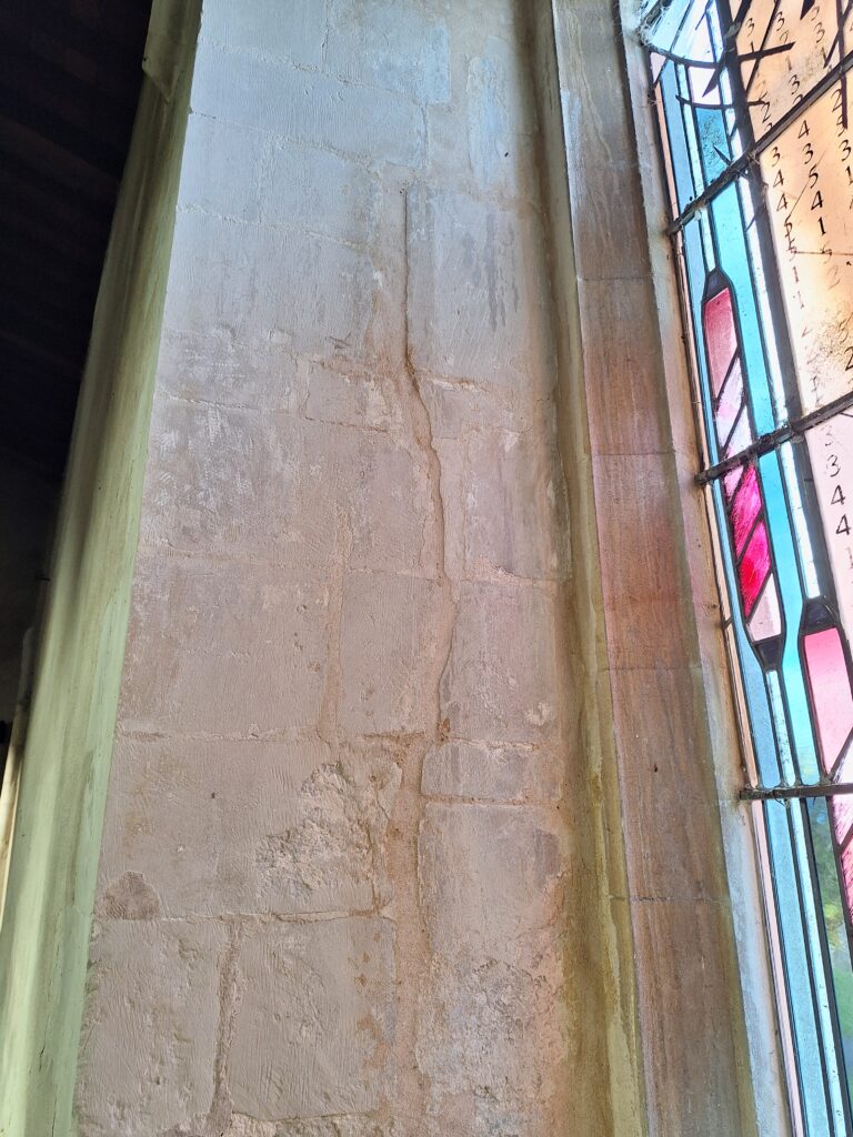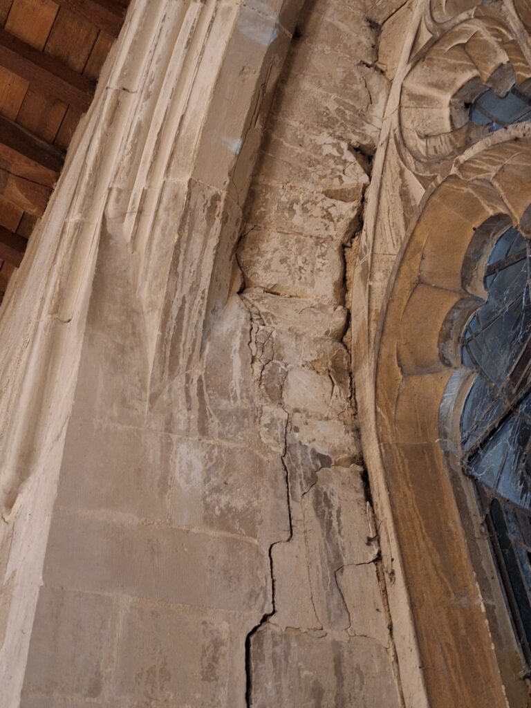 In October 2025, the stonework was stabilised by inserting hidden steel ties into the masonry either side of the window. The cracks were filled, the arch repointed and the window is now safe and restored to its former glory. The work cost a little under £2,000.